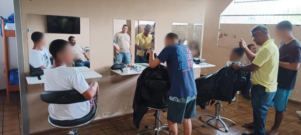 Um dos agentes socioeducativos que atuam na unidade participou como modelo e teve o cabelo e a barba feitos por um dos adolescentes, sob a supervisão do professor. “Estou muito satisfeito de ver a participação e o envolvimento dos socioeducandos com o curso”, disse o agente Marcelio Malta.