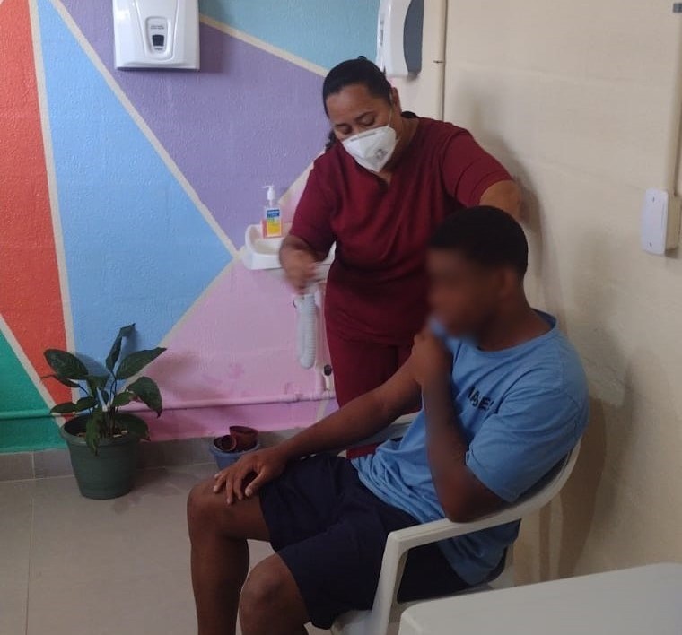 Oitenta e sete jovens que cumprem medidas socioeducativas na Unidade de Internação Sul (Unis Sul) e Unidade de Internação Provisória Sul (Unip Sul), do Instituto de Atendimento Socioeducativo do Espírito Santo (Iases), participaram, respectivamente, nos dias 22 e 23 de abril, da Campanha Nacional de Vacinação Contra a Influenza. A ação foi realizada em parceria com a Secretaria Municipal de Saúde de Cachoeiro de Itapemirim e aconteceu dentro das dependências das unidades.
