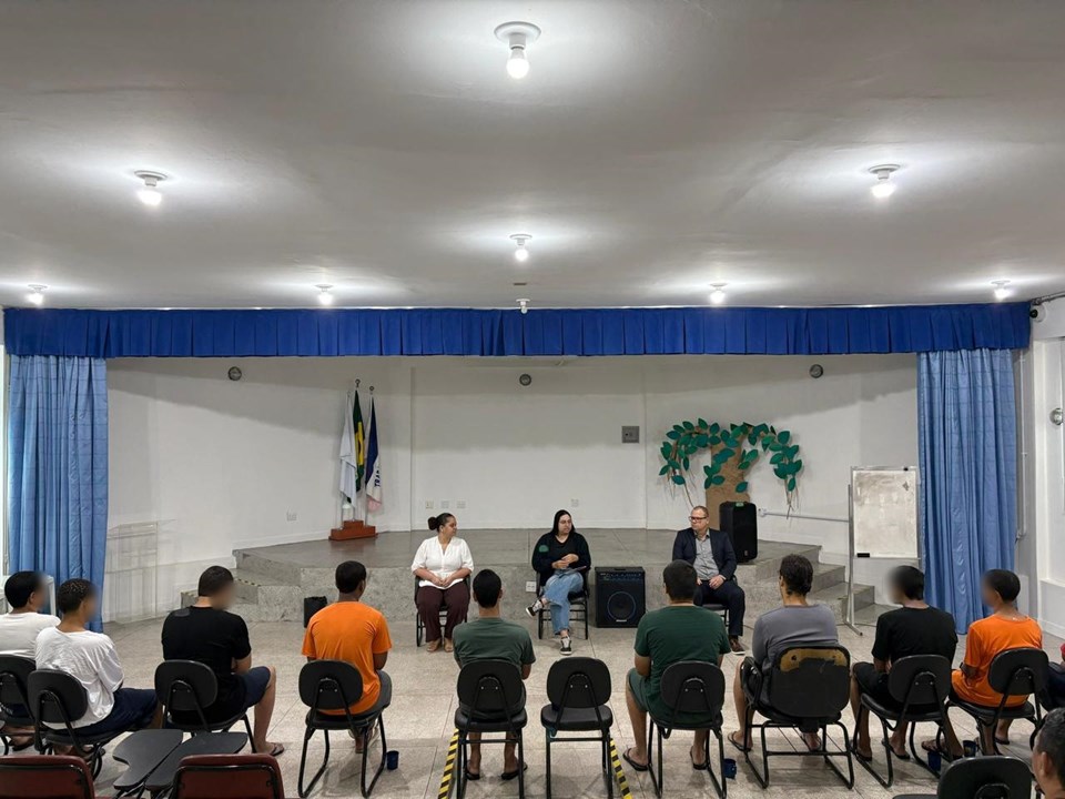 Adolescentes que cumprem medidas socioeducativas no Centro Socioeducativo de Atendimento em Conflito com a Lei (CSE) do Instituto de Atendimento Socioeducativo do Espírito Santo (Iases), participaram de uma palestra sobre profissionalização e trabalho para jovens com o subsecretário de Estado do Trabalho, Emprego e Geração de Renda, André Pessoa dos Santos.